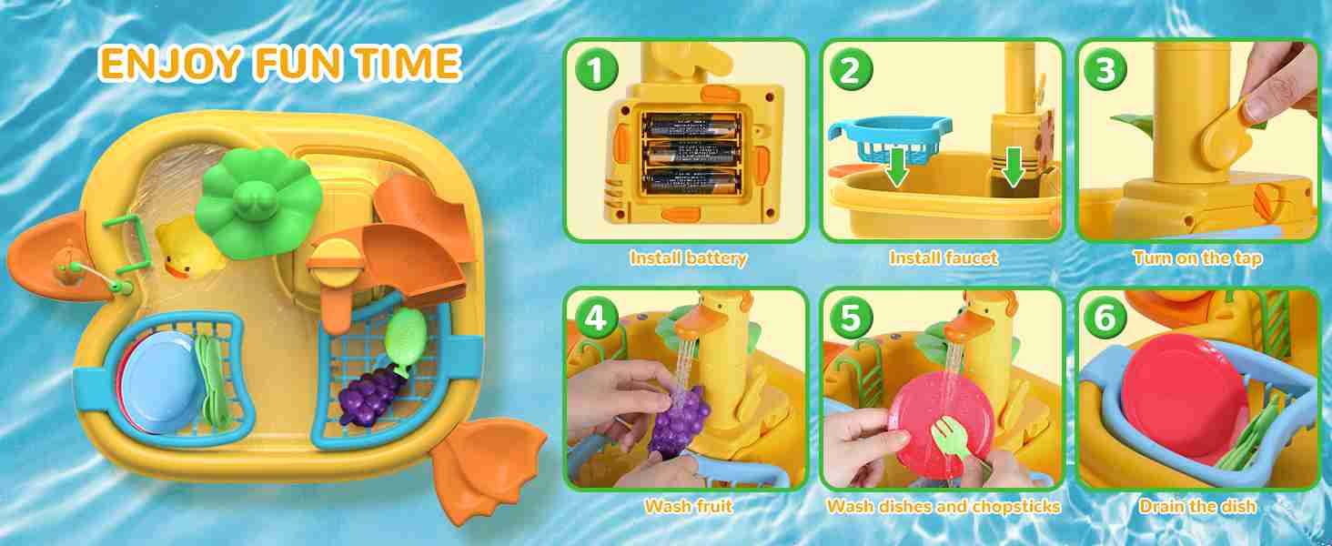 Unbranded Kids Kitchen Sink Toy Electric Dishwasher with Running Water Role Play Gift Fun