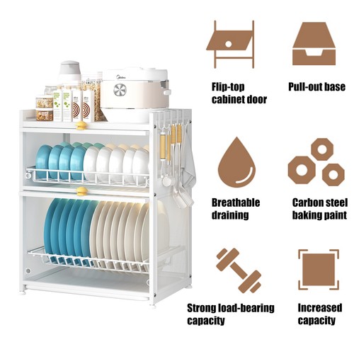 ——Description—— Are you troubled by the chaotic kitchen? This new type of dish storage rack has a huge capacity and strong load-bearing capacity, making it the ideal choice for your life. The hollow mesh design is very convenient and breathable. The flip-over cabinet door is well-dust proof. Choosing it, you can embrace a convenient life! |