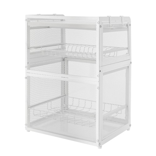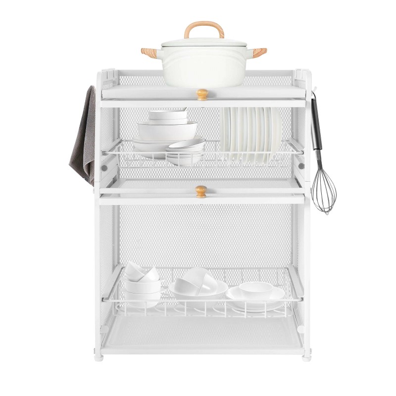 Easy to Clean: With a smooth surface and detachable design, it is easy to clean. If there are dust or oil stains on the surface of the product, you only need to use a damp cloth to apply an appropriate amount of detergent, and the oil stains can be easily removed. | Easy to Access: Using a pull-out drain tray, you don't need to remove all the dishes again, which is very convenient and effortless. And the heightened 6.7inch and 9.8inch layer spacing is enough to allow you to pick up unobstructed without bumping. | High-quality Material: This product is made of high-quality carbon steel with a paint backing process, which can effectively prevent corrosion and rust. |