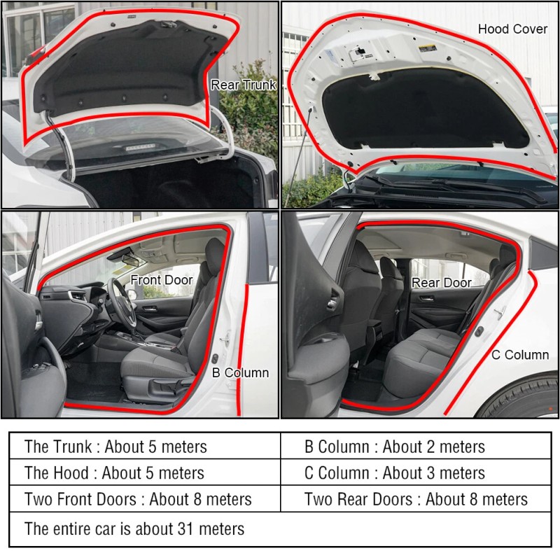 Unbranded L-Shape 52Ft Rubber Universal Car Door Seal Strip Hollow Edge Guard Weatherstrip