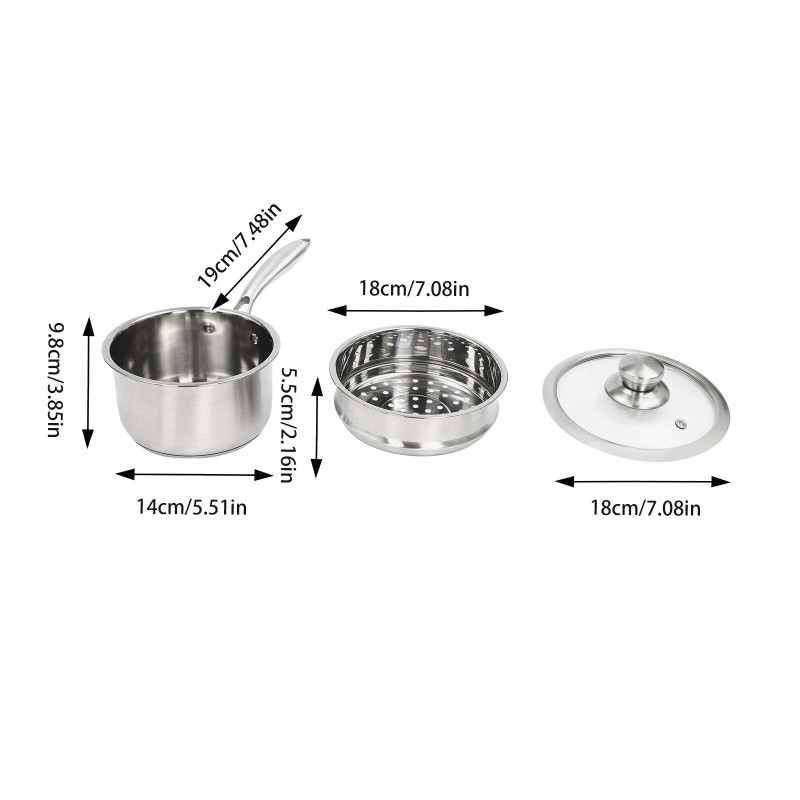 Steaming and Cooking: This product includes a saucepan for cooking, stewing soup, making Congee, etc., and a steamer for steaming seafood, dumplings, egg custard, etc. while preserving the nutrients and flavors of the dish for a healthier and tastier dining experience. They can be used simultaneously to improve cooking efficiency.