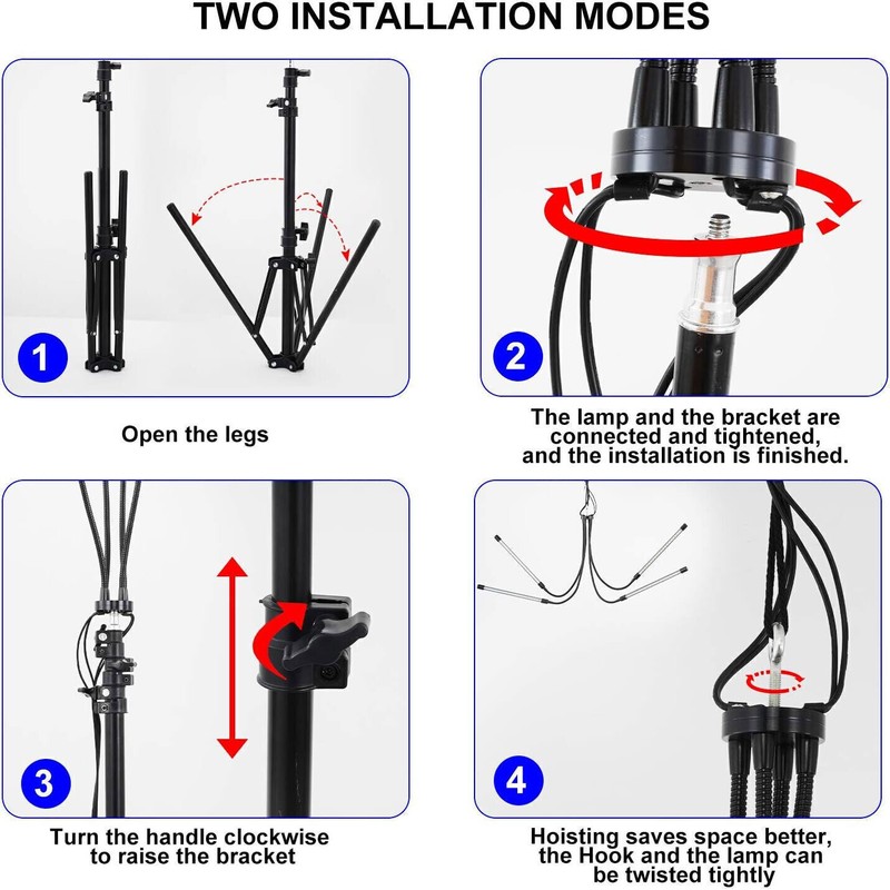 Easy to Install: the tripod of plant lamp can be easily rotated and butt connected with the screw hole at the bottom of the lamp when the top screw is expanded. The height of the tripod can be adjusted at any time within 15-72in. You can adjust the height to stand in the indoor place.
