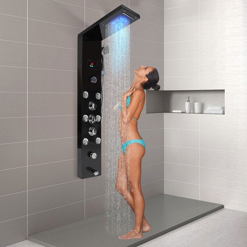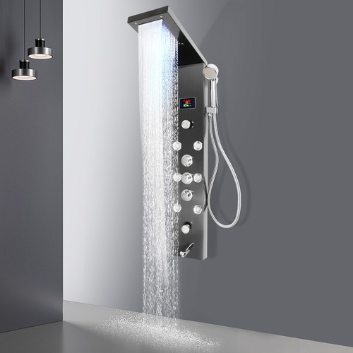Unbranded LED Rainfall Head Hand Shower Panel 8Jets Bathrooms Waterfall Jets Faucet System