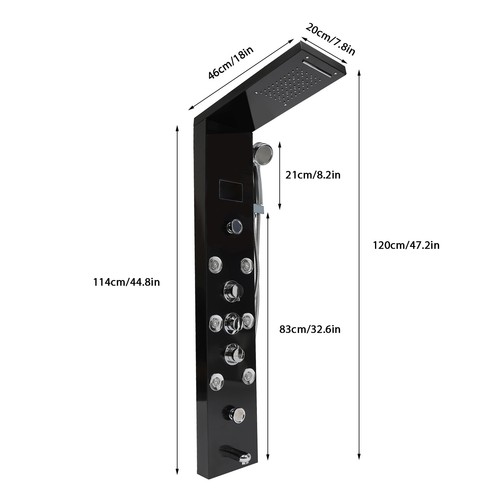 Functions: Rainfall, Waterfall, Massage Jets, Hand Shower, Water Spout, Temperature Display