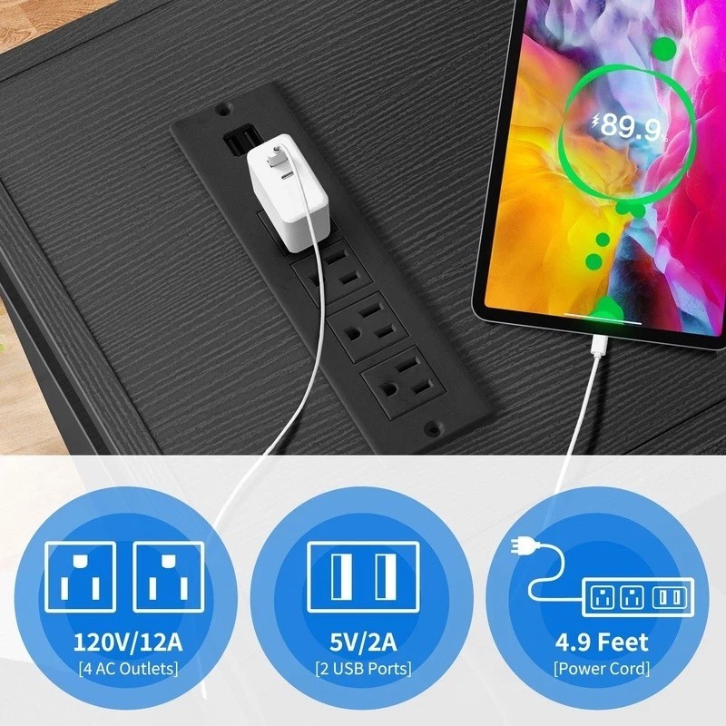 Equipped with 4 AC power outlets and 2 USB ports, this TV console table ensures convenient charging for your gaming devices, TV, smartphones, and tablets, eliminating the worry of running out of power.