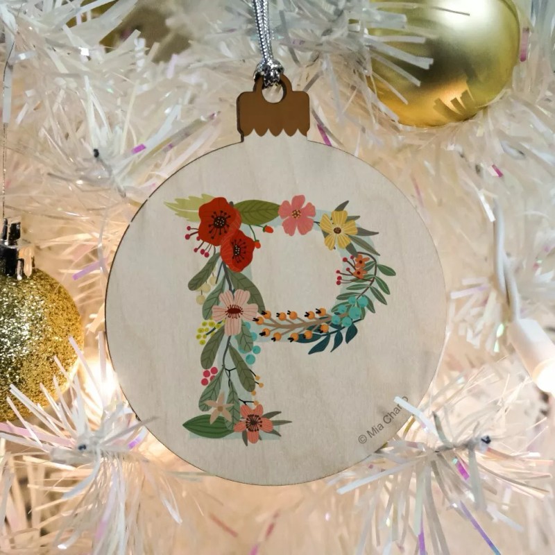 Unbranded Letter P Floral Monogram Initial Wood Christmas Tree Holiday Ornament
