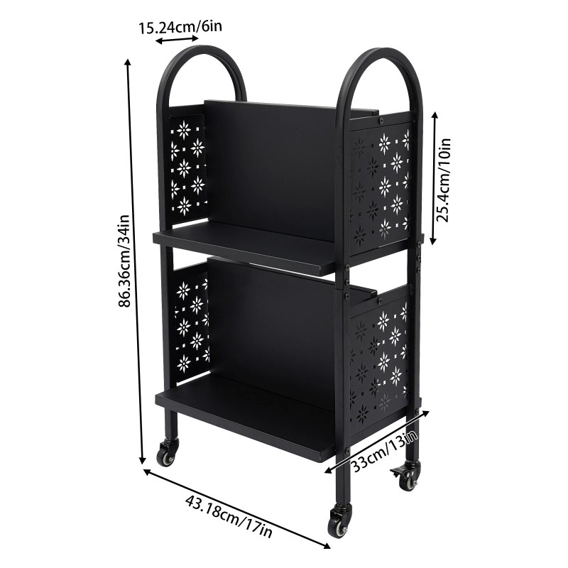 Unbranded Library Book Cart W/Cutout Side Panels 2 Tier Rolling Book Cart Office Book Cart