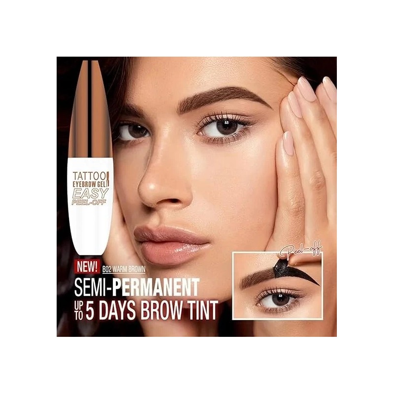#02 Light Brown Tattoo Eyebrow Gel – Semi Permanent, Waterproof, Peel-Off