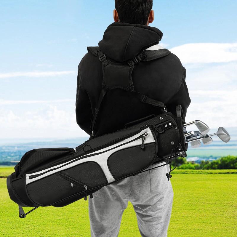 Multifunctional Storage: This product is designed with 3 dividers and 5 pockets, cleverly integrating the golf club bag, water bottle pocket, and multiple storage pockets. This design allows you to easily carry all your essentials like golf balls, gloves, and tees with just one bag.