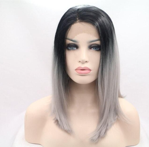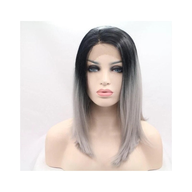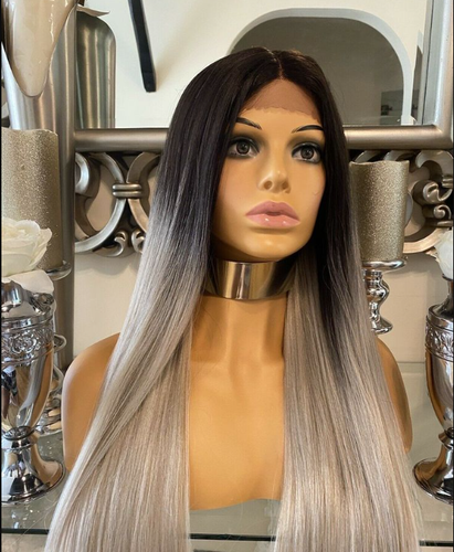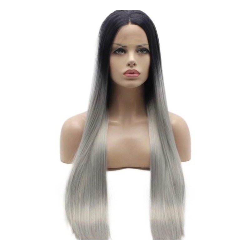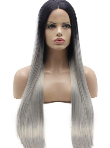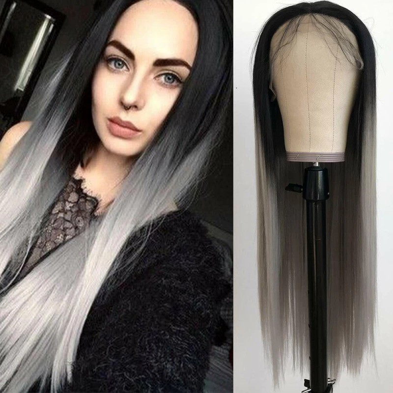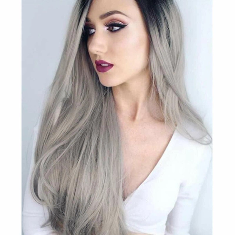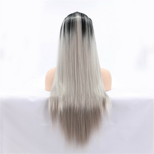 Unbranded Long Straight Dark Root Gray Synthetic Lace Front Wigs Ombre Glueless Long Wigs