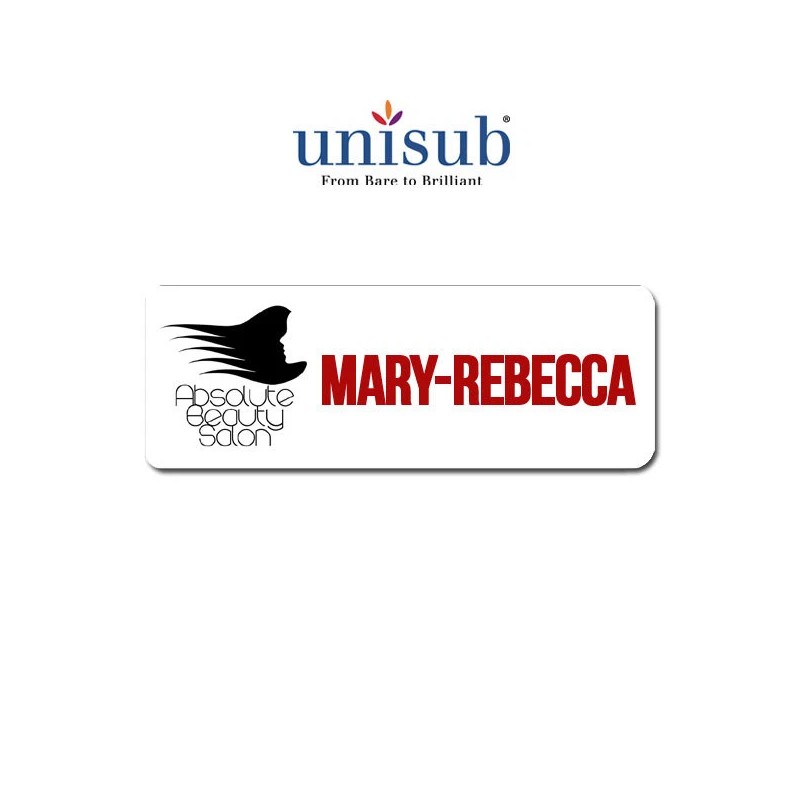 Name Badges are composed of a metal or Plastic name badge that is Digitally imprinted with a Sublimated ink that will last without fading or cracking. The appearance is quite stunning and is sure to garner attention when worn. These Name Tags are available in White, gold or silver and are digitally imprinted with your unique graphic.