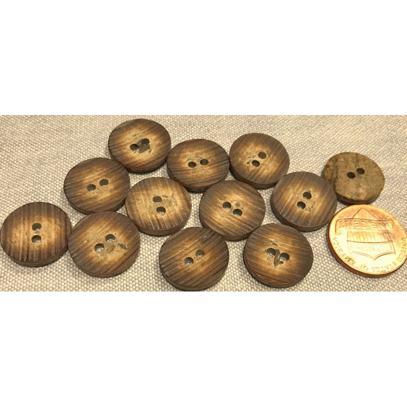 Unbranded Lot of 12 Matte Brown Carved Look Plastic Buttons Almost 5/8" 15.4mm # 8089