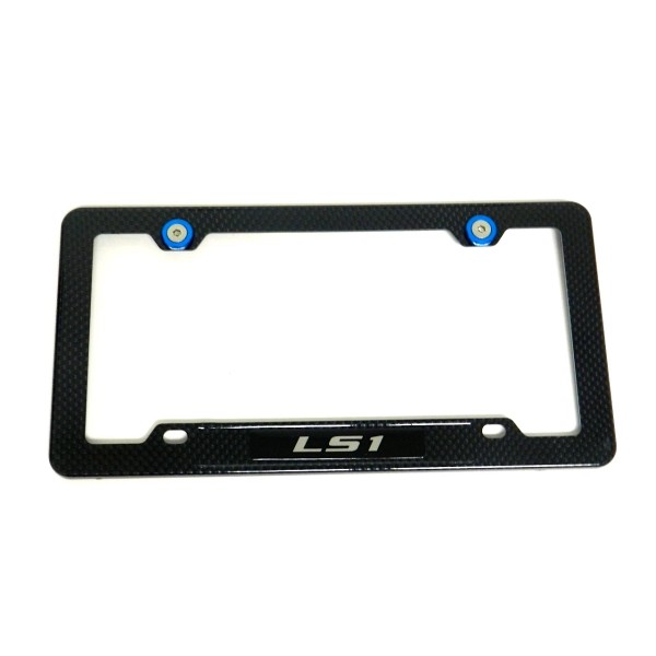 Unbranded LS1 LS-1 CARBON FIBER LOOK LICENSE PLATE FRAME W/ 2 BLUE WASHERS & BOLTS