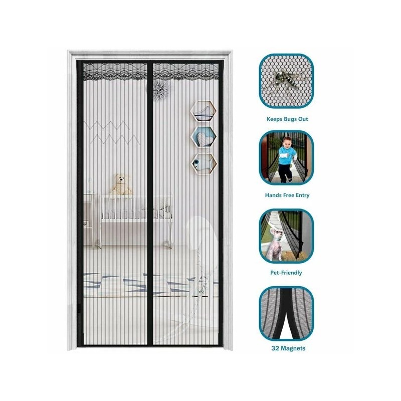 Magnetic Mesh Door Screen - Self Sealing Hands Free Mesh Partition Keeps Bugs Out Pet and Kid Friendly 39 Inch x 83 Inch (100 cm x 210 cm)