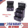 Makeup Train Case, Rolling Makeup Trolley Case, Nail Polish Organizer w/ 4 Wheels, Purple