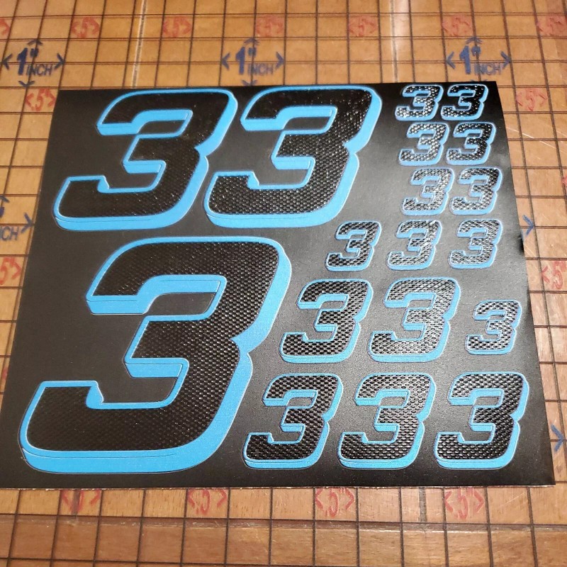 Unbranded Matte Black-w/Gloss Carbon Fiber Blue #3's Racing Numbers Vinyl Decal Sheet Rc