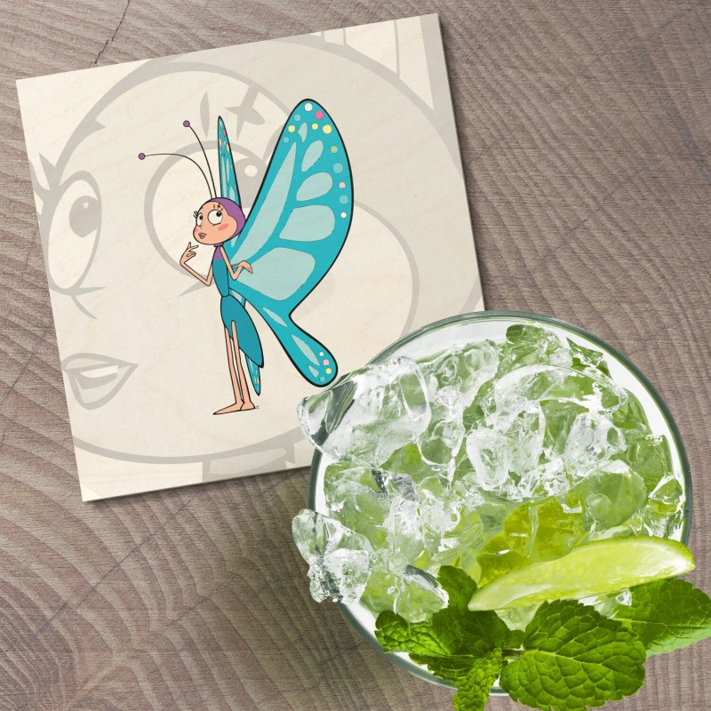 Unbranded Maya The Bee Cartoon Beatrice 4'' X 4'' Square Wooden Coaster