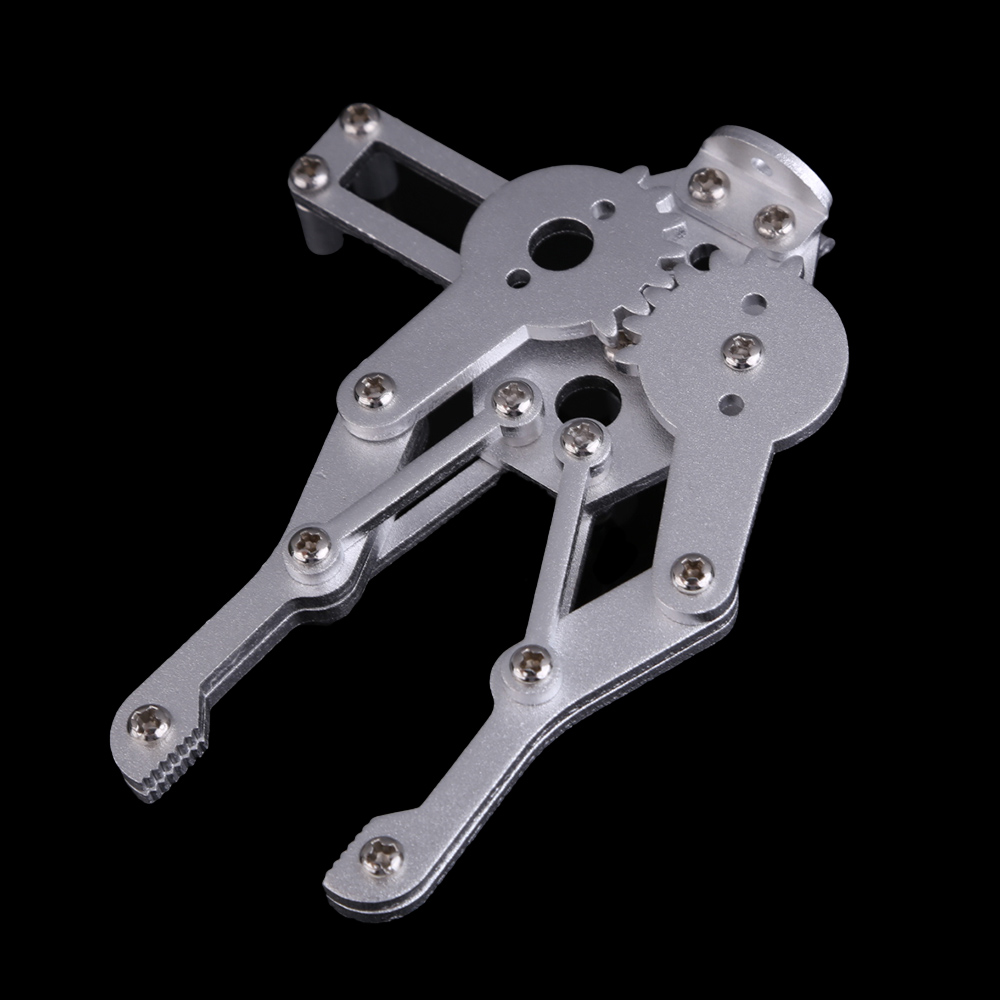 This robotic claw arm is great for all your gripping needs. They are made from metal and are pretty heavy-duty. The claw opens to about 2" and depending on the servo motor used, it can pick up some relatively heavy objects. Because the arms move parallel to each other, you get a better grip.