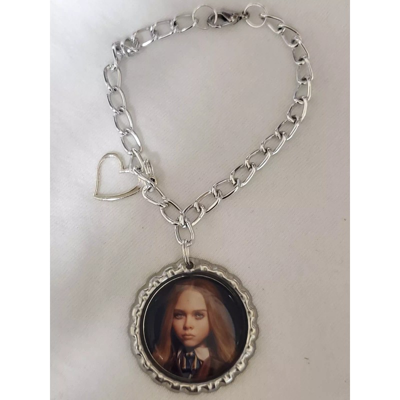 Bracelet Megan M3gan curb chain 4.5mm, flattened bottlecap charm added with megan cute heart added....... message me immediately after payment I need Childs age ... age please.... or wrist size I can do it in adult size just message me....I need Childs or adult wrist size