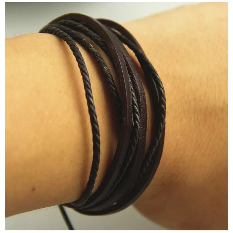 - 1 X Men's Punk Hand Made Bangles Brown Braided Rope Wristband Cuff Leather Bracelet Adjustable...