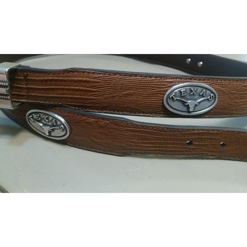 Unbranded Men's Leather Brown Lizard Belt with University of Texas Longhorns Conchos 28 NL