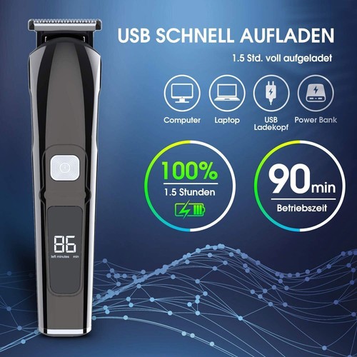 USB Quick Charge & LED Display: Up to 90 minutes of shaving in just 90 minutes of charging. The men's hair trimmer is equipped with an LCD display that shows the amount of power left in the electric shaver to remind you to charge in time. The USB charging design allows you to find a charging source at any time, perfect for travelling !