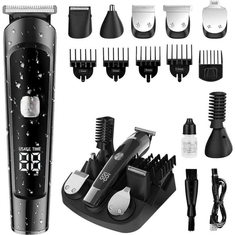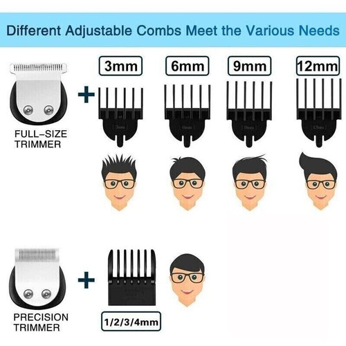 6 IN 1 Multi-Functional Trimmer Kit: Meet all your daily grooming needs with 6 trimmer heads: full-size trimmer, precision trimmer, design trimmer, body trimmer, nose hair trimmer, and micro shaver. Also includes 5 guide combs(3,6,9,12mm for full size trimmer, 1,2,3,4mm adjustable sideburn combs) for styling your beard, body and intimate areas, as well as moustache, nose, ear and facial hair, or groin.
