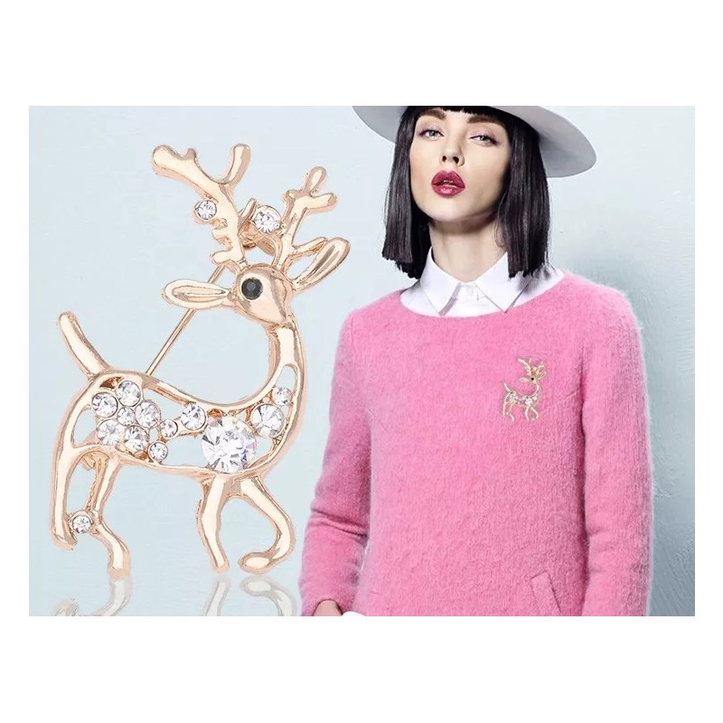 Unbranded Men Womens Deer Animal Crystal Rhinestone Brooch Pin Shirt Hat Christmas Gift AD
