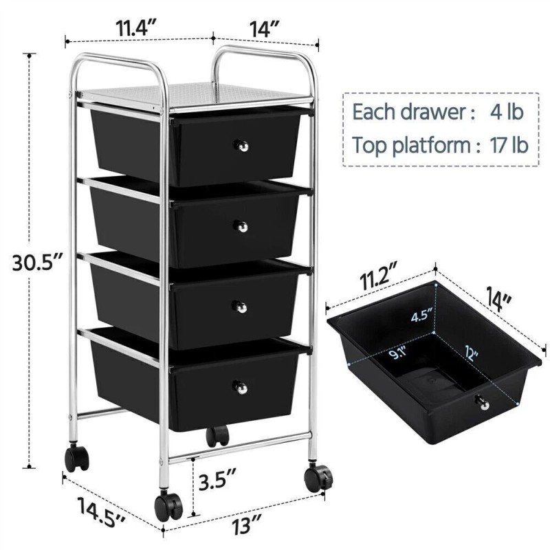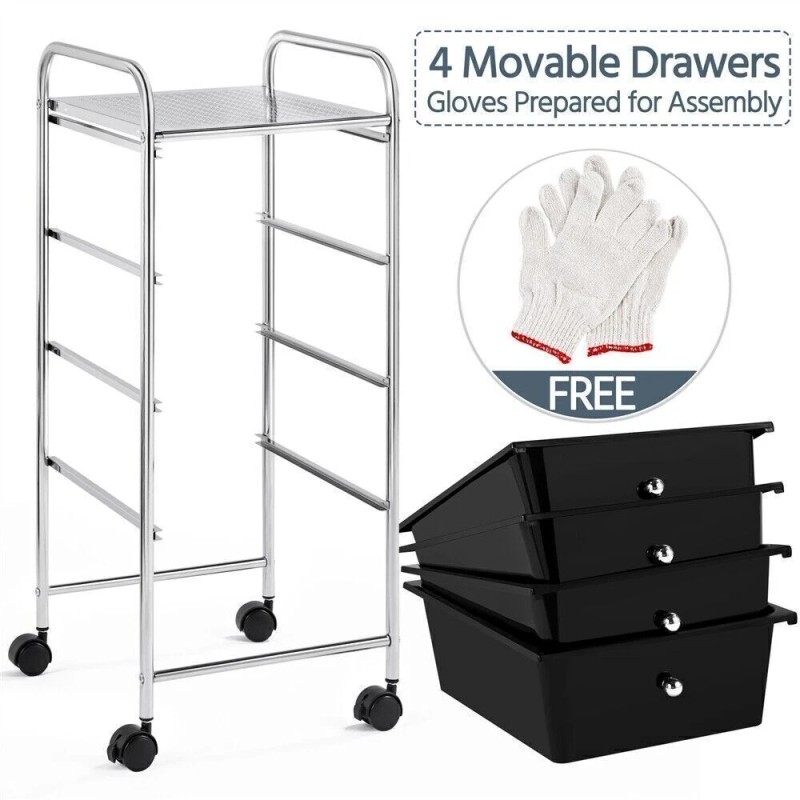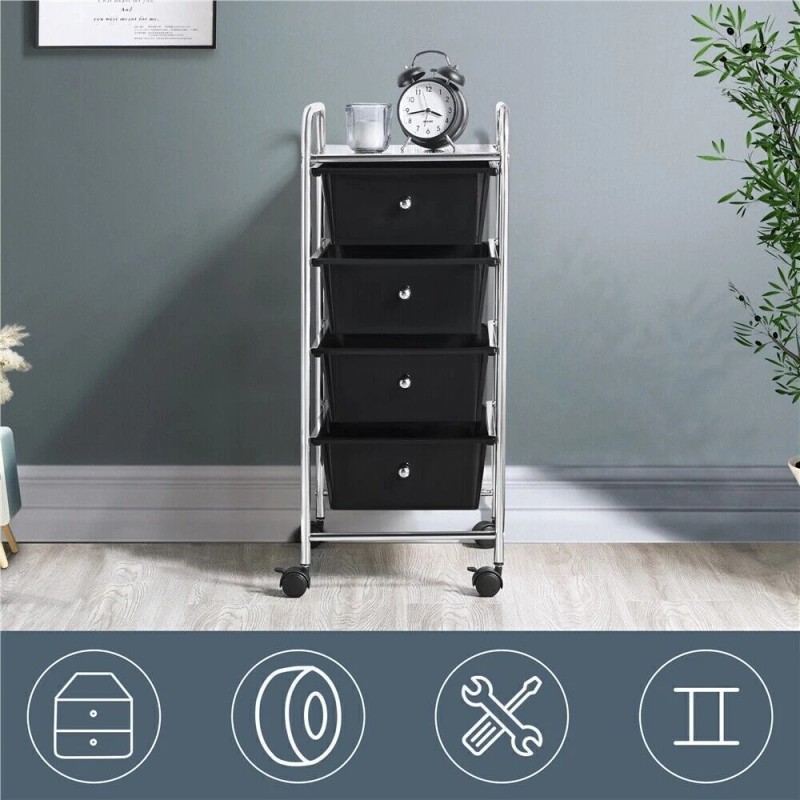 Unbranded Metal Frame Storage Cart Rolling Bin Trolley 4 Drawers Black Iron P...