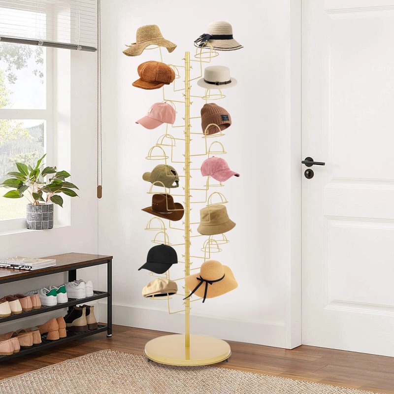 Unbranded Metal Hats Display Stand Hat Storage Stand With 30 Hooks Freestanding Hat Rack