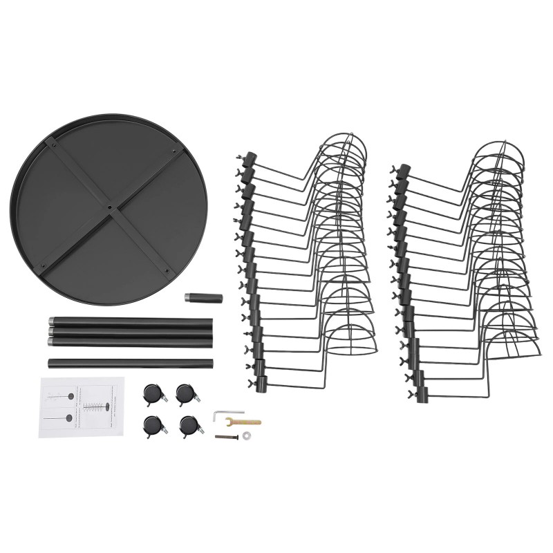 This hat rack is designed specifically for hat displaying, aiming to provide an efficient and tidy storage solution. The combination of premium material and exquisite craftsmanship ensures its durability. The 30-hook design and strong load-bearing capacity meet your various hat storage needs, and the 4 universal wheels facilitate the movement of this product. With its exceptional practicality and aesthetic appeal, it will be an indispensable part of your home or store.