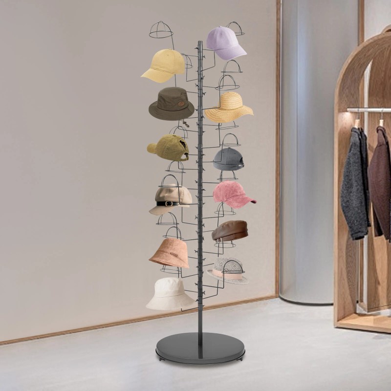 Unbranded Metal Hats Display Stand Hat Storage Stand With 30 Hooks Freestanding Hat Rack