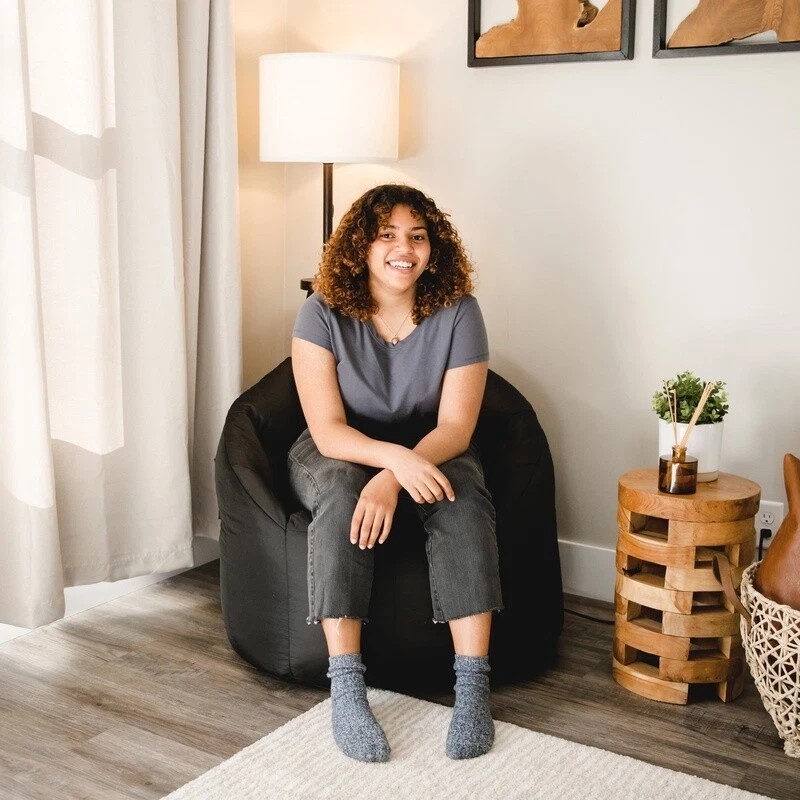 COMFORT MEETS STYLE: This fan-favorite bean bag chair's structured design not only gives you the support you need but also comes in a variety of styles to fit your personality! DURABLE MATERIAL: Designed with our durable, stain-resistant SmartMax fabric, spot cleaning is easily accomplished. PERFECTLY FILLED: We purposely fill your bean bag with the perfect amount of beans, because we know an over-filled bean bag is not comfy! IT'S IN THE DETAILS: Double-stitched with dual zippers for extra safety and durability. Take the Milano bean chair with you wherever you go with the convenient built-in handle. VERSATILE: Perfect for kids bedoorms, game rooms, dorm rooms, and more