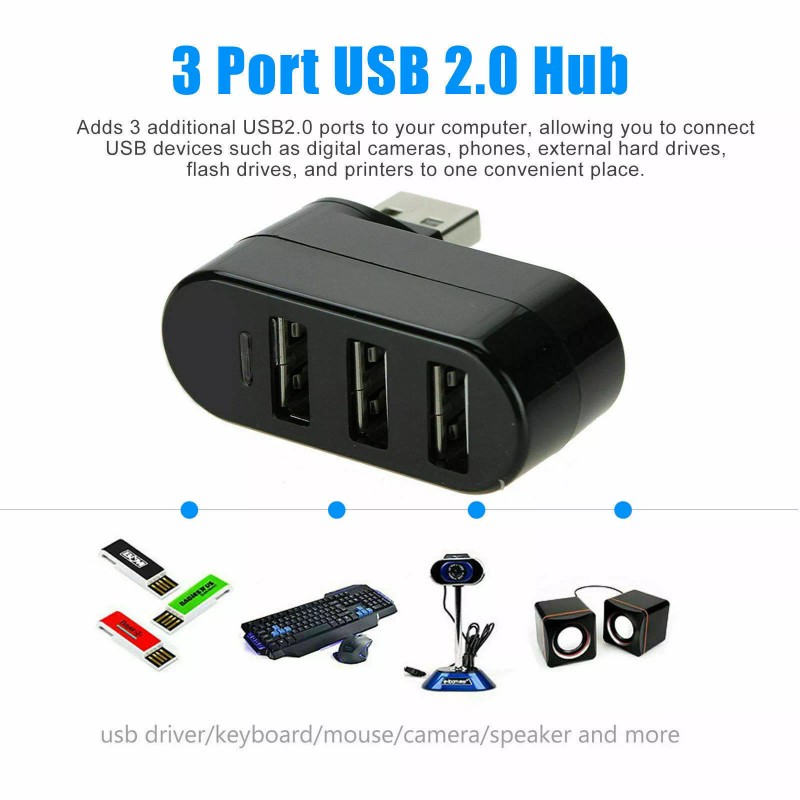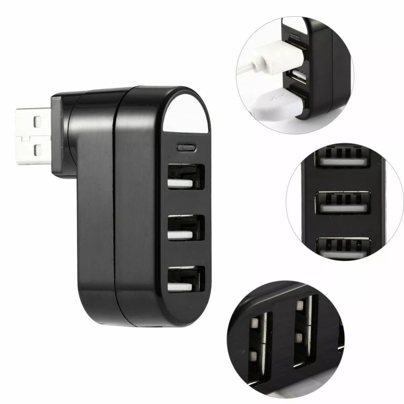 Mini 3 Port USB 2.0 Hub Rotating Splitter Adapter Hub For PC Laptop Mac Notebook