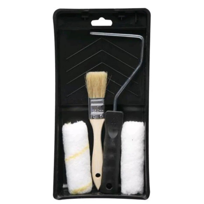 5 Piece Mini Painting Kit. Includes 2 4" pain rollers, 1" paint brush, 4" roller frame, 5.8" x 11.4 paint tray.