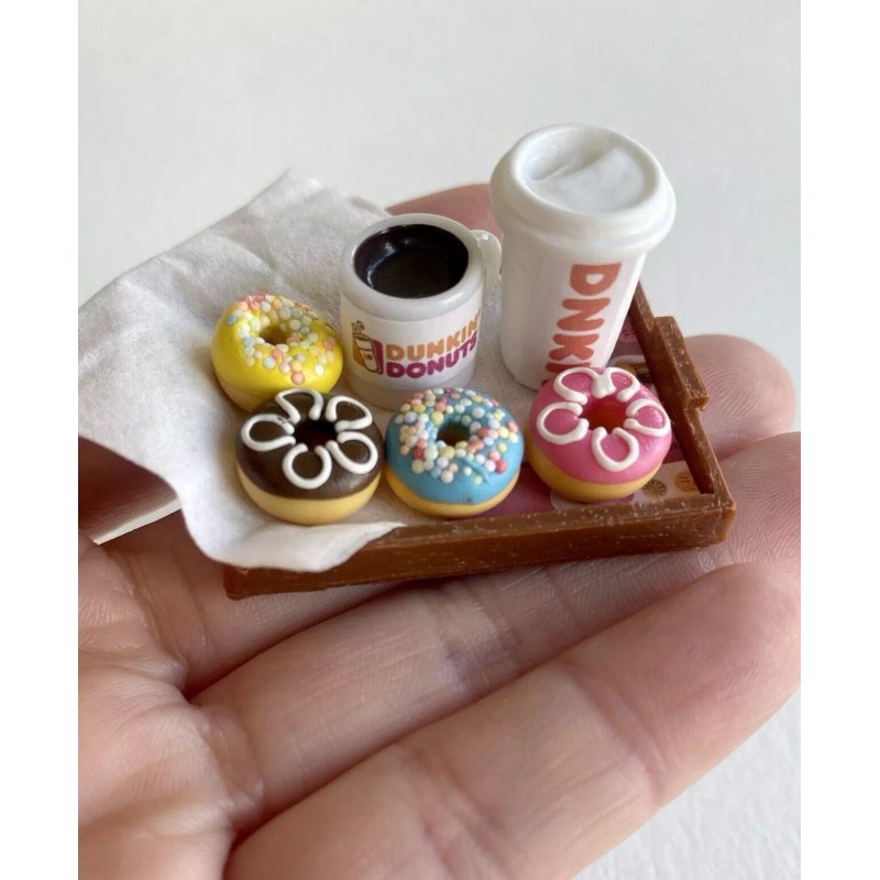 Unbranded Miniature Dollhouse Handmade Dunkin’ Donuts With Tray 7 PCs Set Doughnuts
