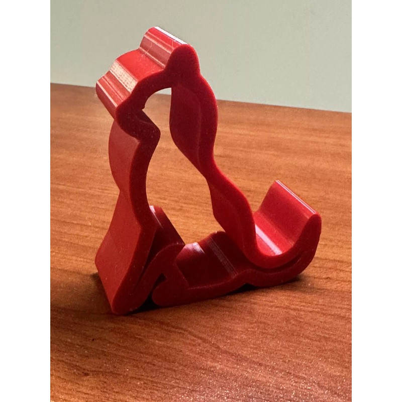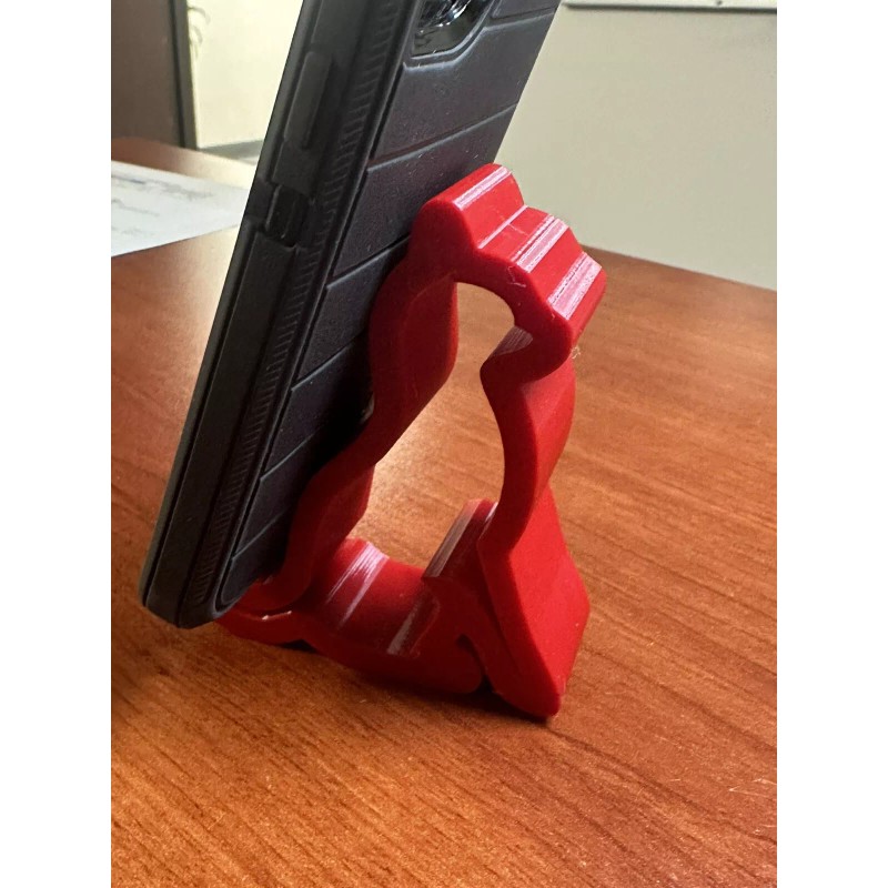 Keep your phone in easy reach while you work or play with this lightweight 3D printed phone holder. The fire engine, red holder adds a pop of color to your desk and the personalized design ensures that your phone is always safe. This 3.5” tall holder is larger than others sold here, more sturdy and made with PLA filament that will keep your phone in place.