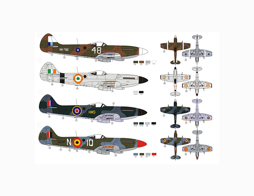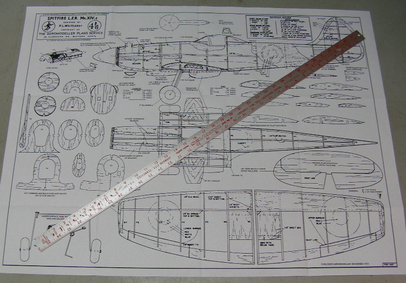 Unbranded Model Airplane Plans (FF): Spitfire LFR Mk-XIV.e Scale 26½" for .5-75cc (.049ci)