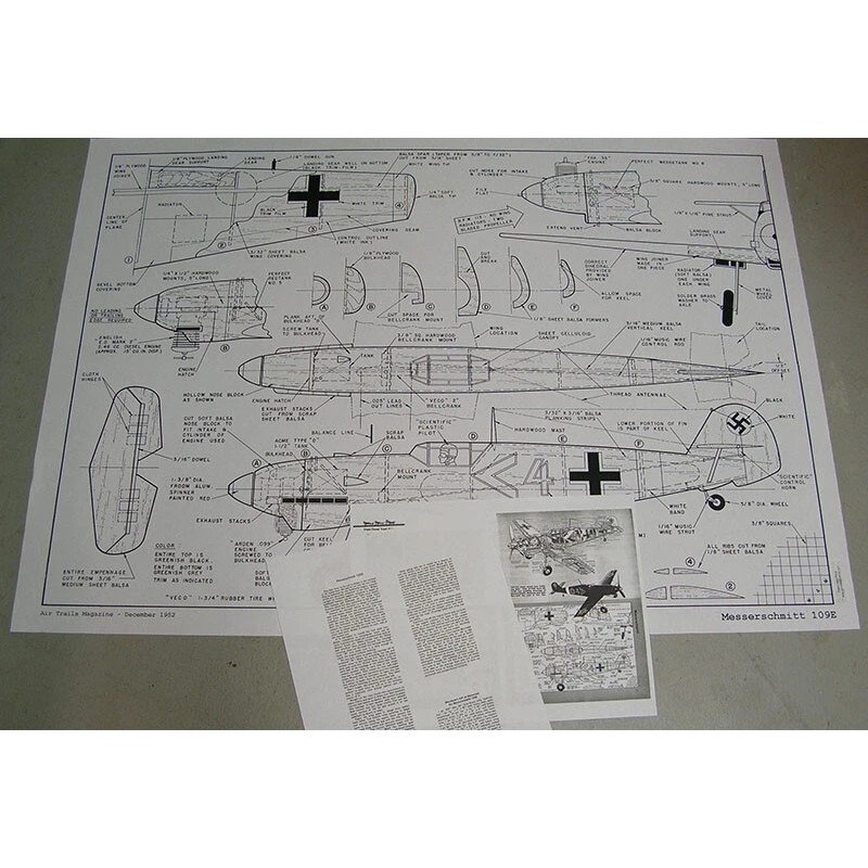 Unbranded Model Airplane Plans (UC): ME-109e 27" 1/16 Scale for .09-.15 (Musc...