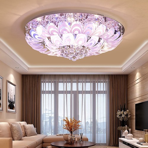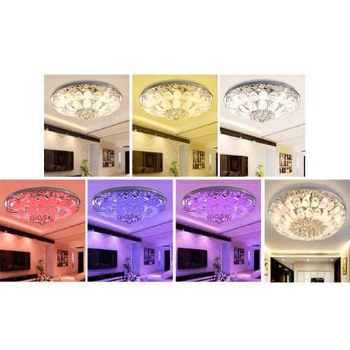 Specifications: Type: Modern Crystal Ceiling Light Material: ABS + hardware chassis + high-quality K9 crystal Voltage:100-265v Size: 80cm (31.5") Height: 28cm / 11" Light source type: LED chip panel (6 color light + gradient mode light) Switch: remote control Power: Max 40W Irradiation area: 12~25 ㎡ Color: Each light can give people a feeling: bright yellow light, bright and not dazzling, low-key yet luxurious, pure white and bright light, giving a clean and comfortable feeling, elegant and pure, warm yellow light, Warm and comfortable, showing the luxurious atmosphere, the red light makes people warm like fire, infinite vitality, blue light, quiet and elegant, make people happy, charming purple light, elegant and full of emotions, make people feel happy