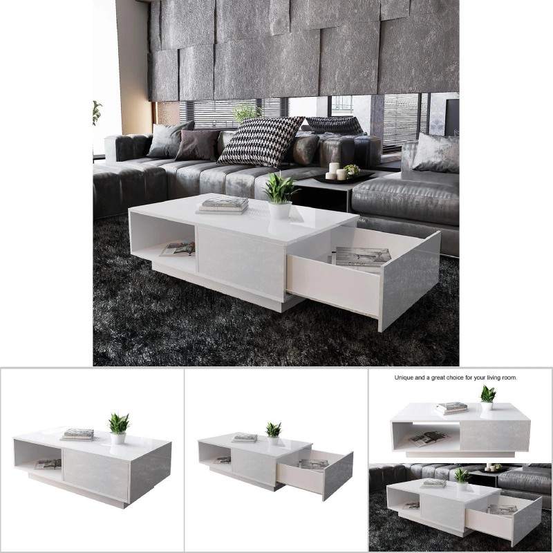 Unbranded Modern High Gloss Rectangular Coffee Table For Living Room