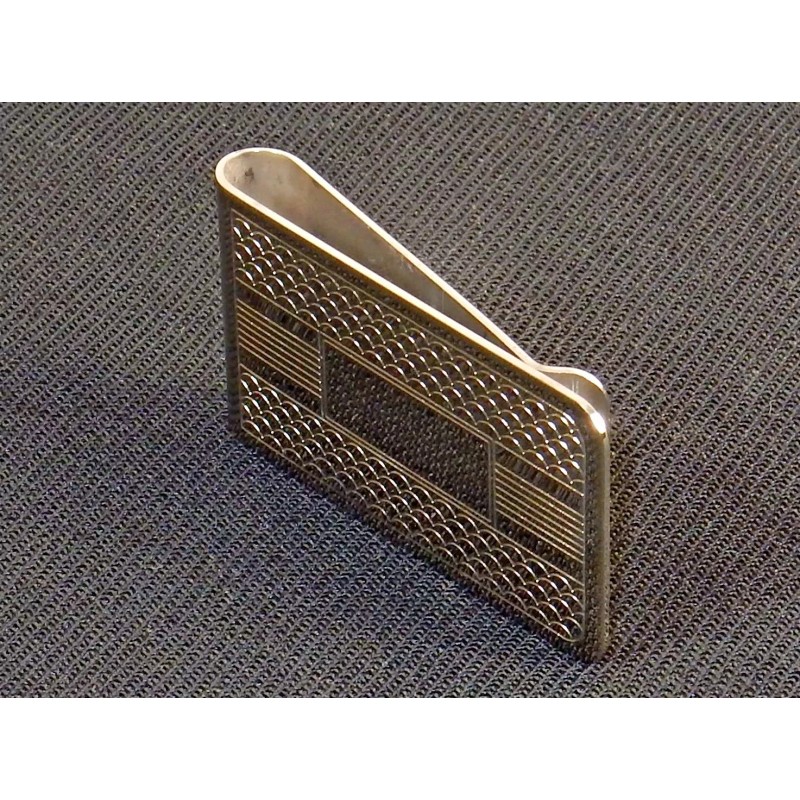 Unbranded Money Clip ~ Silver-Tone w/Scallops & Lines, Rectangle Engraving Space #5320280