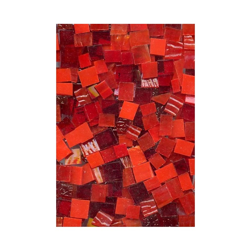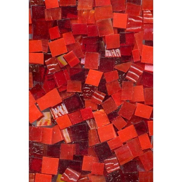 This Mosaic Scrap Pack contains about 100 hand cut pieces (5 ounces) of BRIGHT RED glass. This glass is a selection from different stained glass manufacturers and may not be suitable for fusing. The pack may include textured glass and iridized glass. No two packs have exactly the same glass combination. These pieces may be a combination of opaque, opalescent, translucent, and transparent glass. They are perfect for either traditional mosaic projects or for glass-on-glass applications.