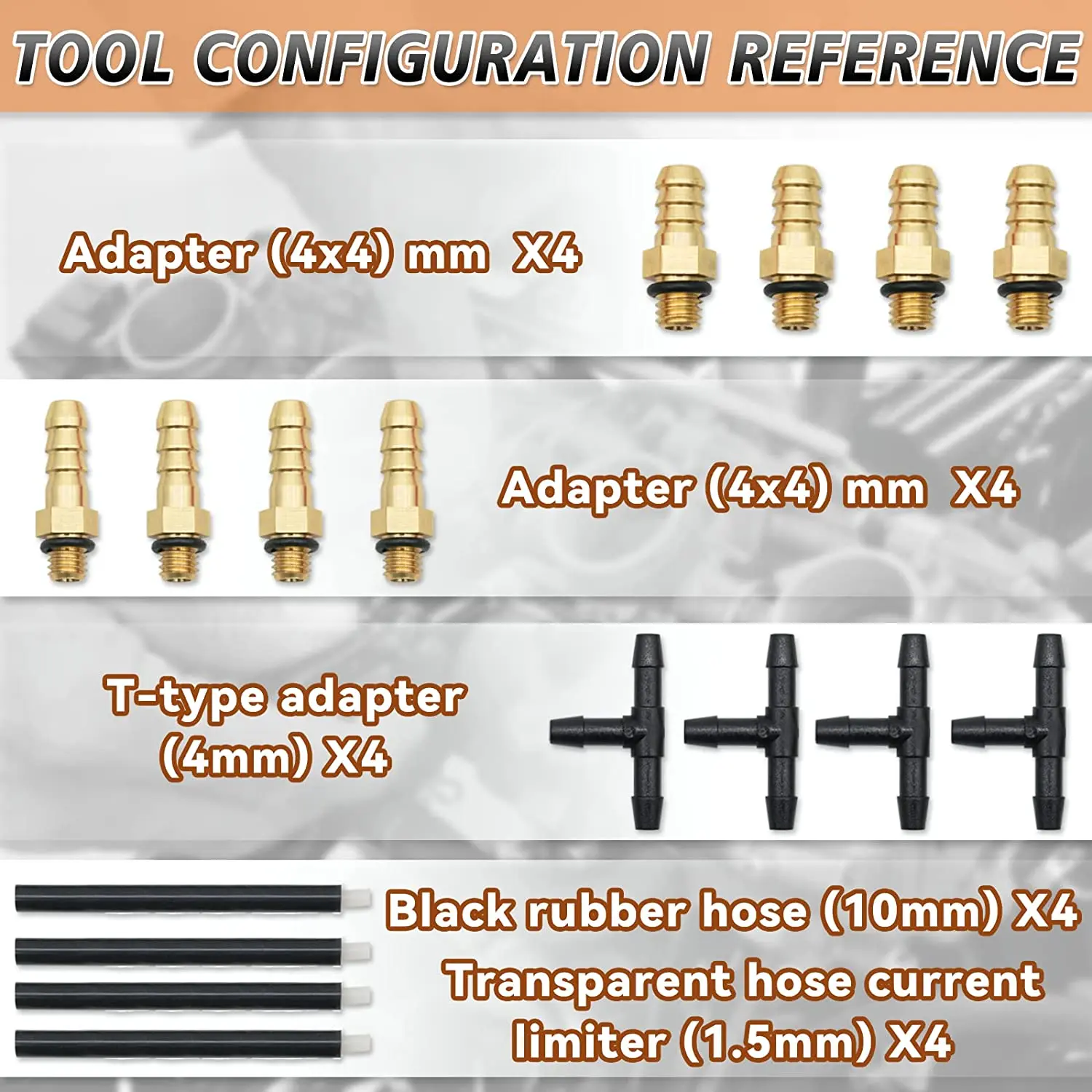 - 5. After use, first remove the black rubber hose from the four cylinder balance instrument, then remove it from the inlet, and hang the rubber hose to drain the fuel.
