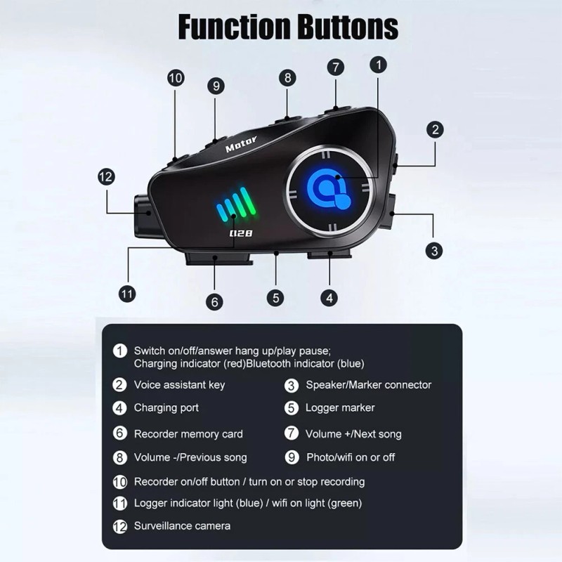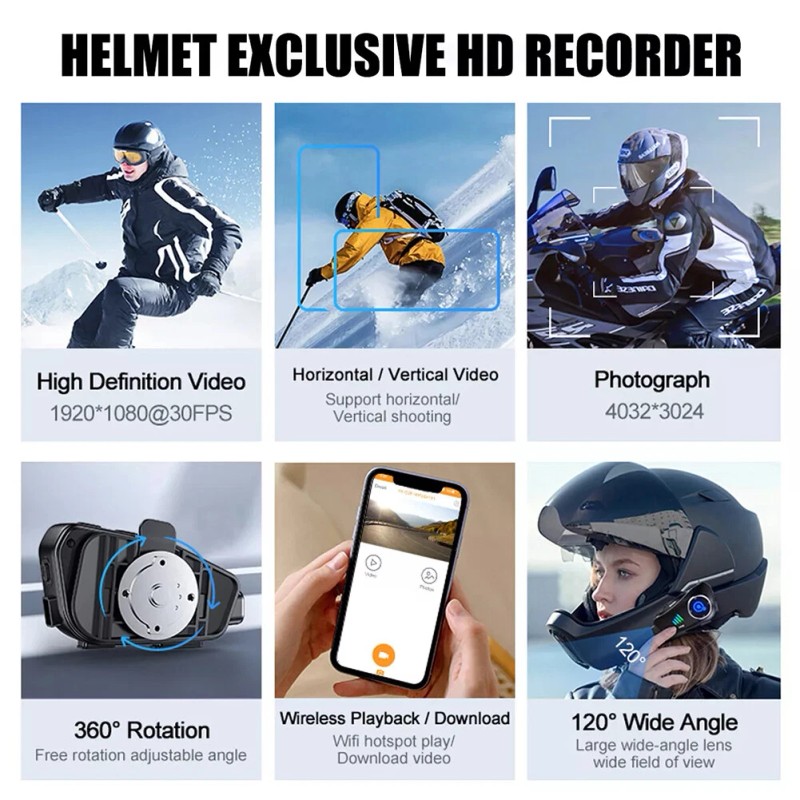 Unbranded Motorcycle Helmet Headset with 1080P WIFi Camera Bluetooth Call +32GB TF