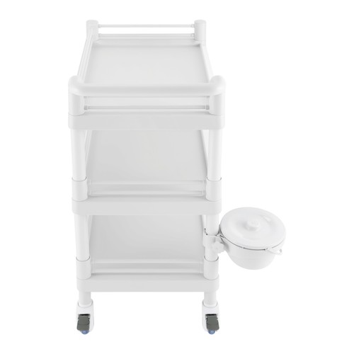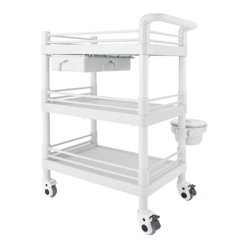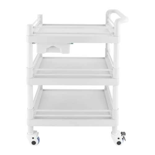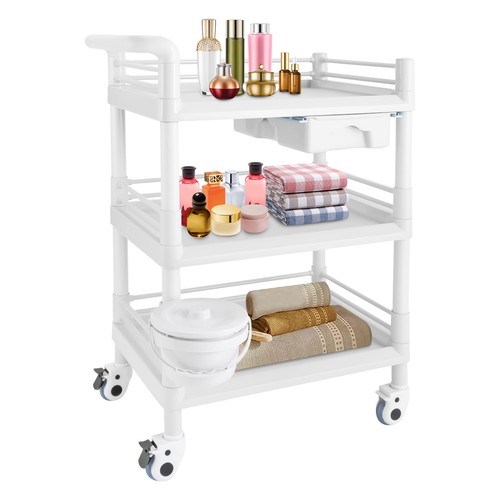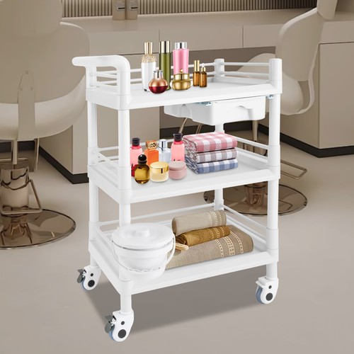 With its attractive appearance, large capacity, and sturdy construction, this hair salon storage cart is the ideal storage solution for your barber shop. Its 3 drawers and two open tiers are ample enough to store daily barber tools, and the four casters make this product easy to move around, making your work environment tidy and increasing your work efficiency.