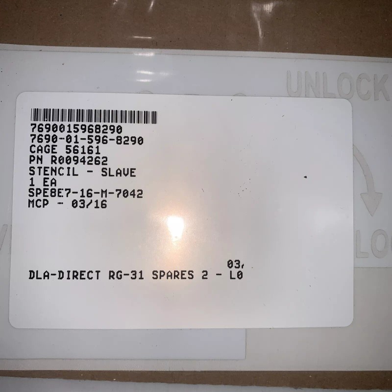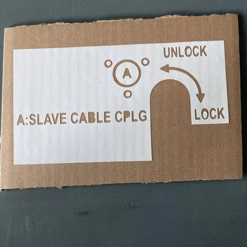 Plastic, military issued, adhesive, stencil for slave cable plug wall. Shipped first class USPS.