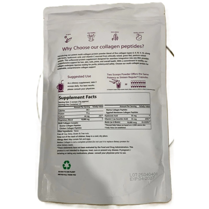 - Contains multiple types of collagen: Enjoy the benefits of Oufex's unflavored multi collagen complex, featuring the five main collagen types: I, II, III, V, and X. It is GMO-free and gluten-free, and third-party tested for quality assurance.