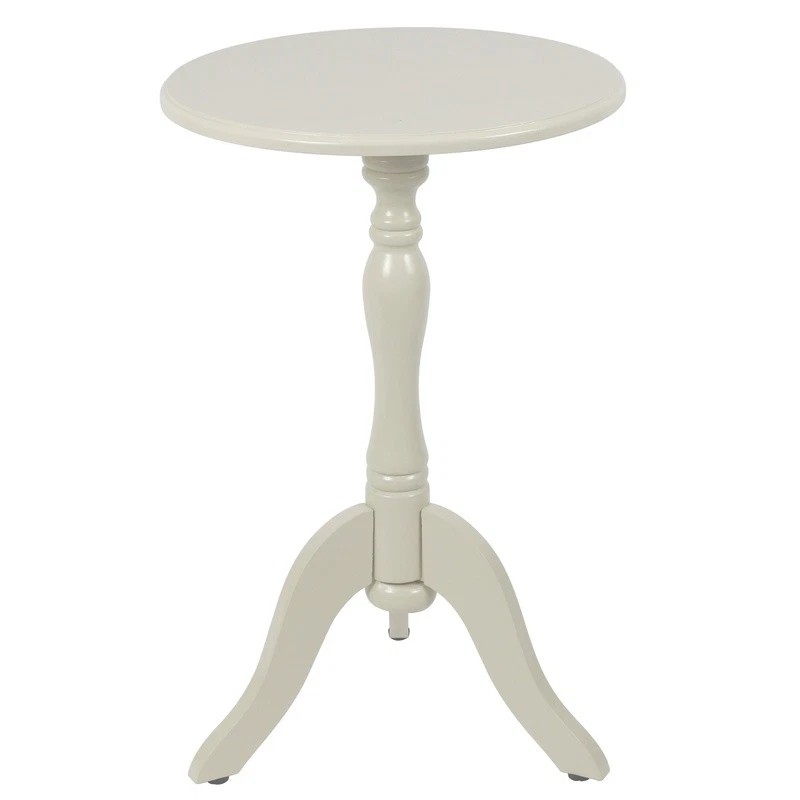 Add a touch of timeless elegance to your home decor with the  Simplify Round Pedestal Accent Side Table in Buttermilk.  This chic and compact MDF furniture piece is designed to complement traditional stylish spaces with its classic design and versatile functionality.  Crafted with care, this accent side table features a round pedestal design and a charming Buttermilk finish that exudes warmth and sophistication.  Its compact dimensions (15" x 15" x 24") make it perfect for small spaces, offering both style and practicality.  Whether used as an end table in your living room, a bedside table in your bedroom, or a decorative accent in any other space, this piece effortlessly enhances your home decor.  Pair it with your favorite armchair or adorn it with a beautiful to create a cozy and inviting ambiance.  Experience the perfect blend of chic design and compact functionality with the  Simplify Round Pedestal Accent Side Table.  Add it to your space today and transform your home into a haven of comfort and style.