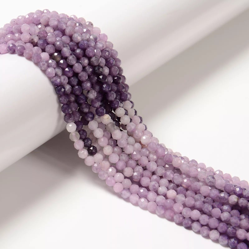 Unbranded Natural Gradient Lepidolite Faceted Round Beads Size 4mm 15.5'' Strand